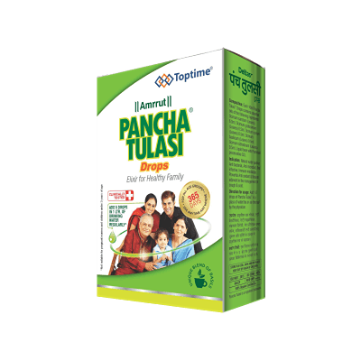 Description: Immunity booster, recurrent cough & common cold; adjuvant in bacterial diseases, supportive in influenza; swine flu and dengue Sore throat/foul smell, recurrent illness, skin disorders Useful in children prone to allergies; supportive in skin ailments; water disinfectant Composition: Each 10ml of Amrrut Pancha Tulasi Drops contains essential oils of the following ingredients: Ocimum sanctum (Leaves) 6.0ml, Ocimum gratissimum (Leaves) 0.5ml, Ocimum canum (Leaves) 0.5ml, Ocimum basilicum (Leaves) 0.5ml, Ocimum citriodorum (Leaves) 0.5ml, Liquid base with Permitted preservatives Q.S.